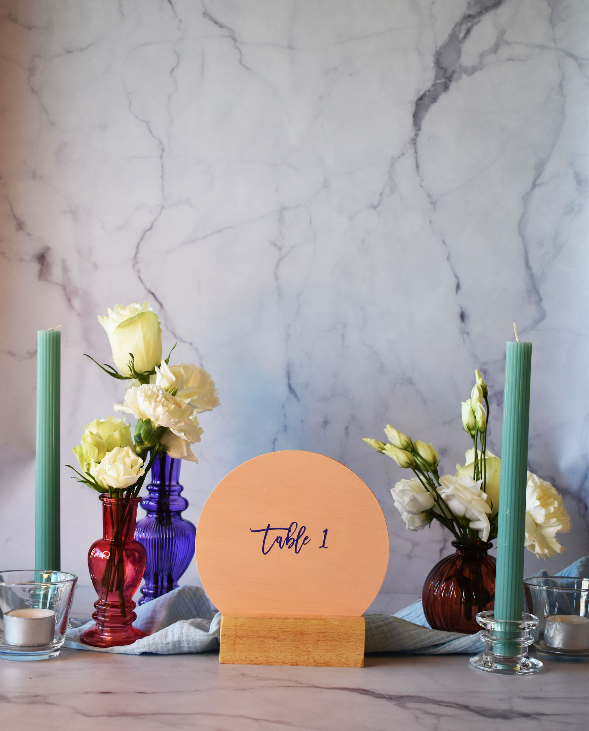 Bring authenticity and elegance to your reception with these hand-painted wooden wedding table numbers. Personalized to match your style, they clearly mark each table while enhancing your décor.