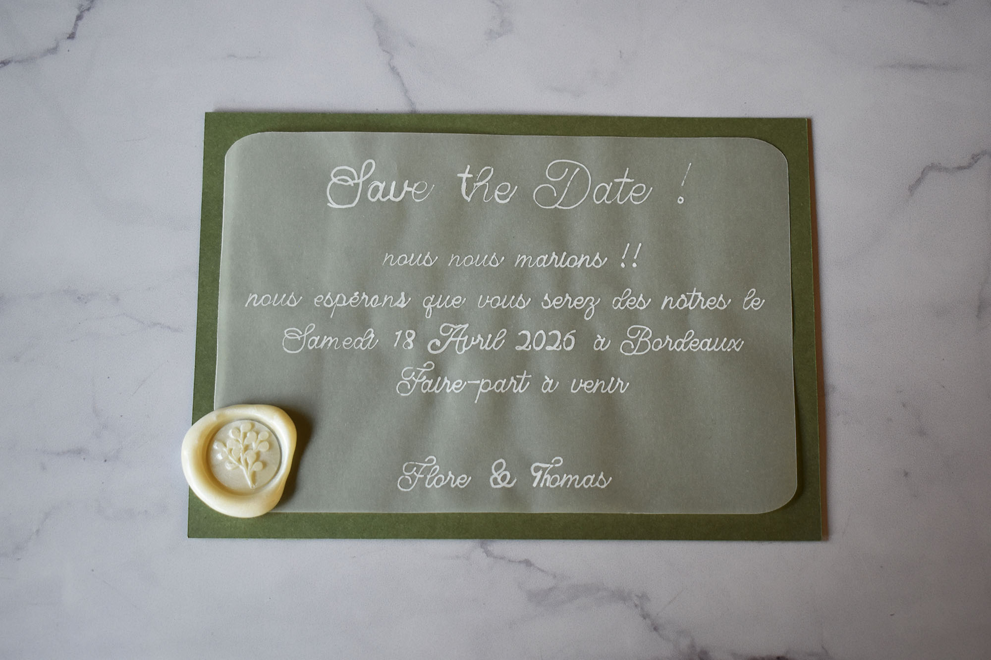 Pour les faire-part, remerciements, option brunch ou carton de retour, merci de charger votre texte personnalisé.